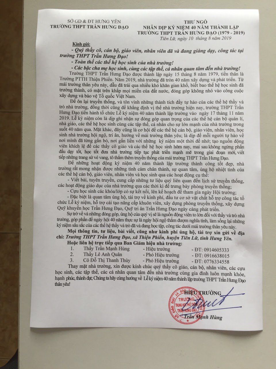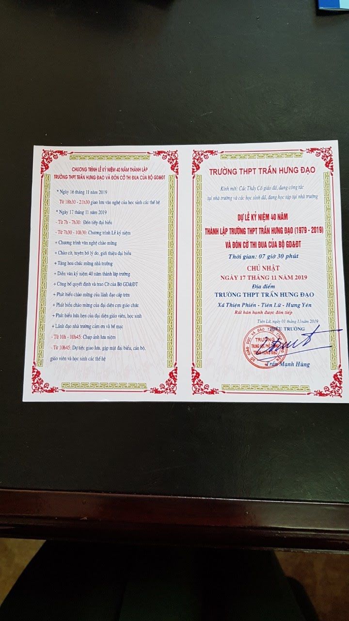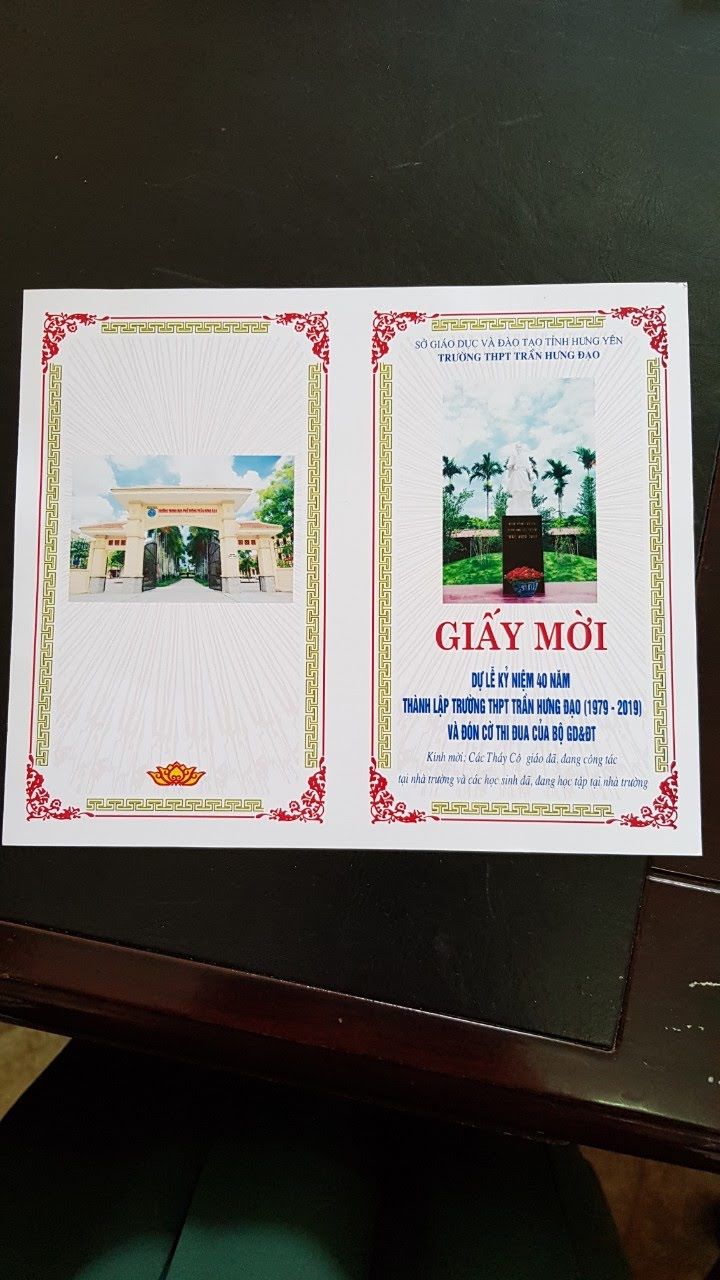 THƯ MỜI DỰ LỄ KỈ NIỆM 40 NĂM THÀNH LẬP TRƯỜNG THPT TRẦN HƯNG ĐẠO